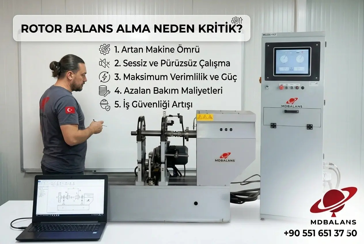Teknik ekipler için burada asıl değer, ölçülebilirliktir. Balans alma doğru makine, doğru yöntem ve doğru toleransla yapıldığında sonuçlar sahada takip edilebilir hale gelir. Bu da bakım kararlarını daha öngörülebilir, üretim performansını daha kararlı kılar.