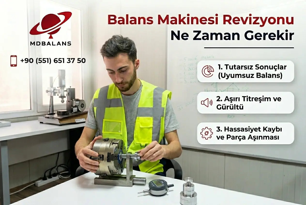 Balans makinesinin revizyona ihtiyaç duyduğunu gösteren işaretler genellikle sahada nettir. Aynı rotorun farklı çevrimlerde farklı sonuç vermesi en tipik örneklerden biridir. Bunun yanında referans parçalarla yapılan kontrollerde sapma görülmesi, titreşim sinyalinde kararsızlık, devir bilgisinde düzensizlik, ekran veya kontrol ünitesinde gecikme, mekanik hareketlerde sertlik ya da boşluk hissi de önemli göstergelerdir.