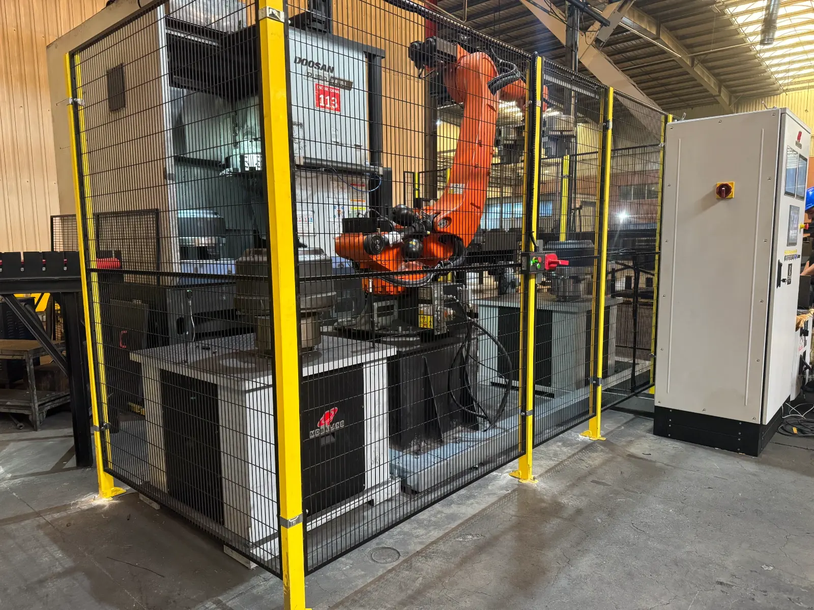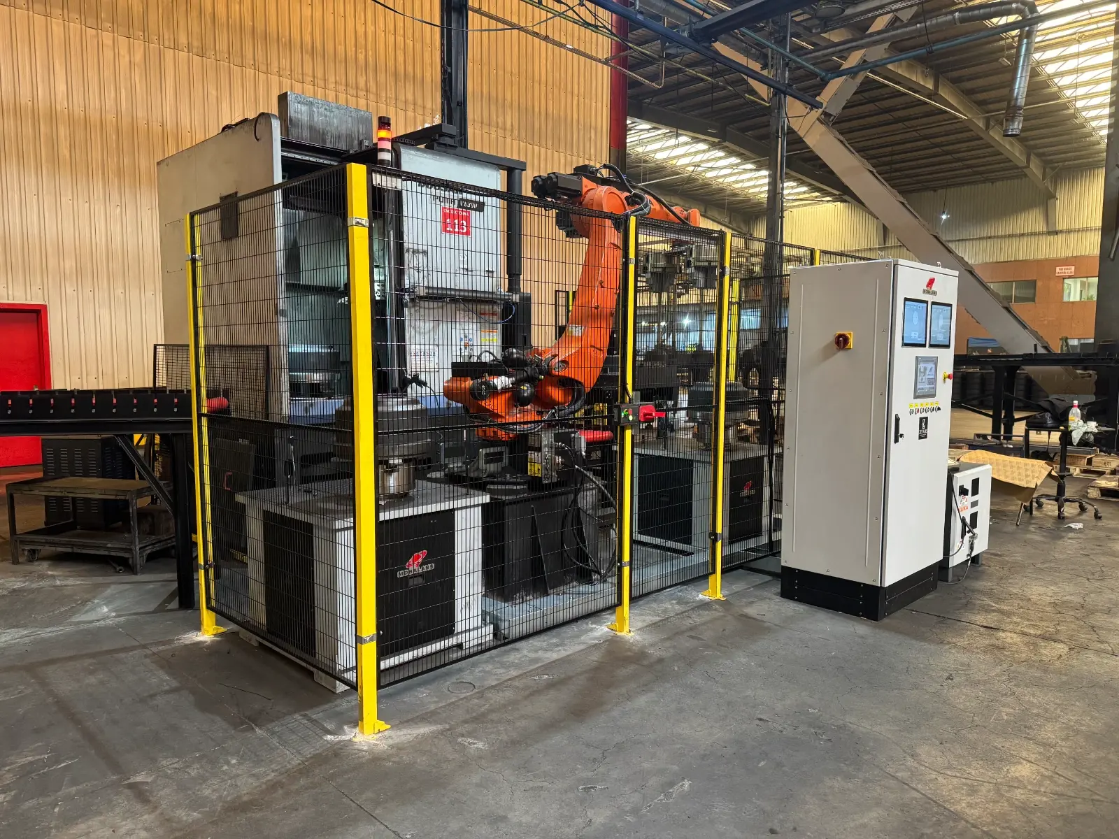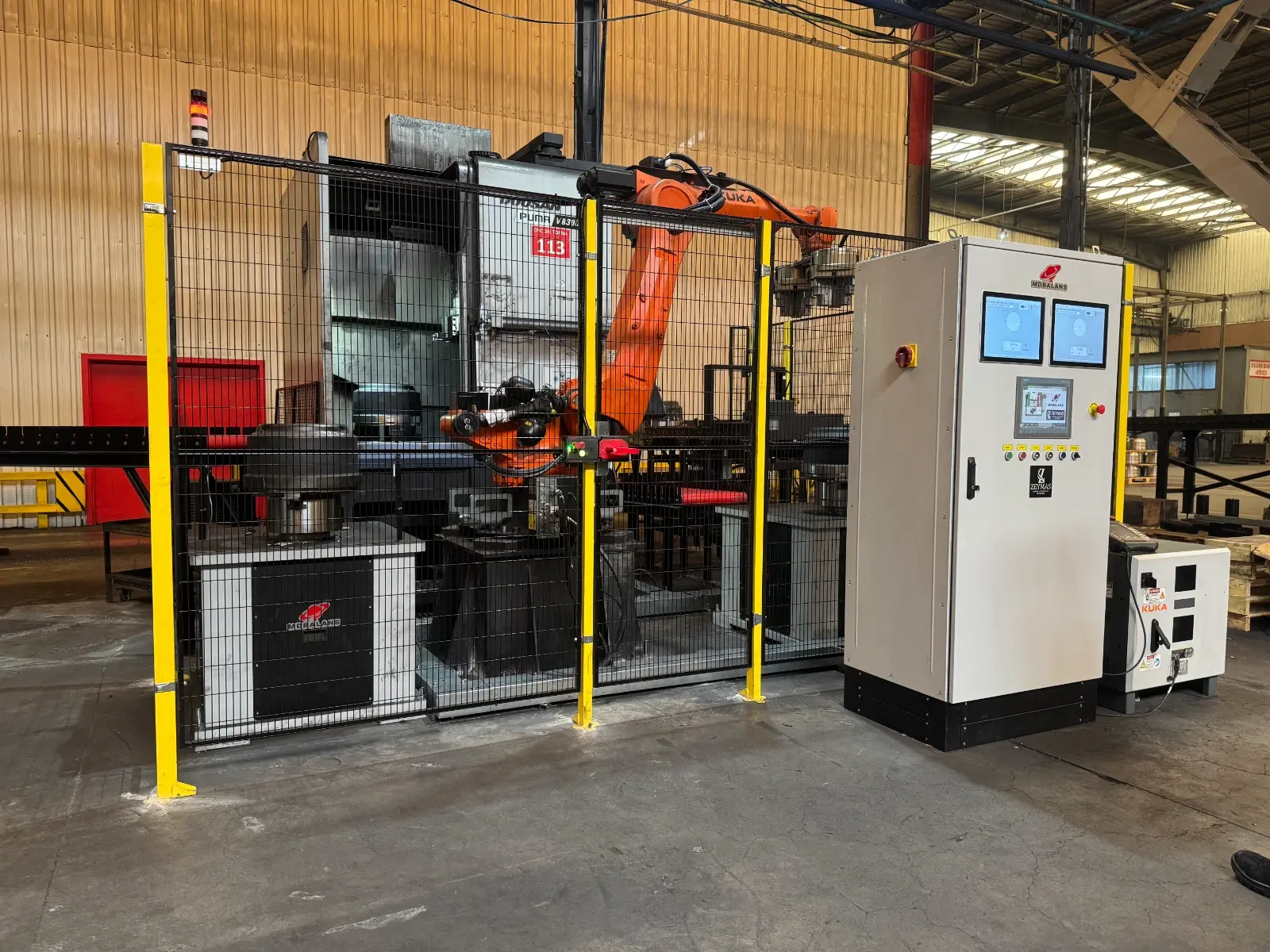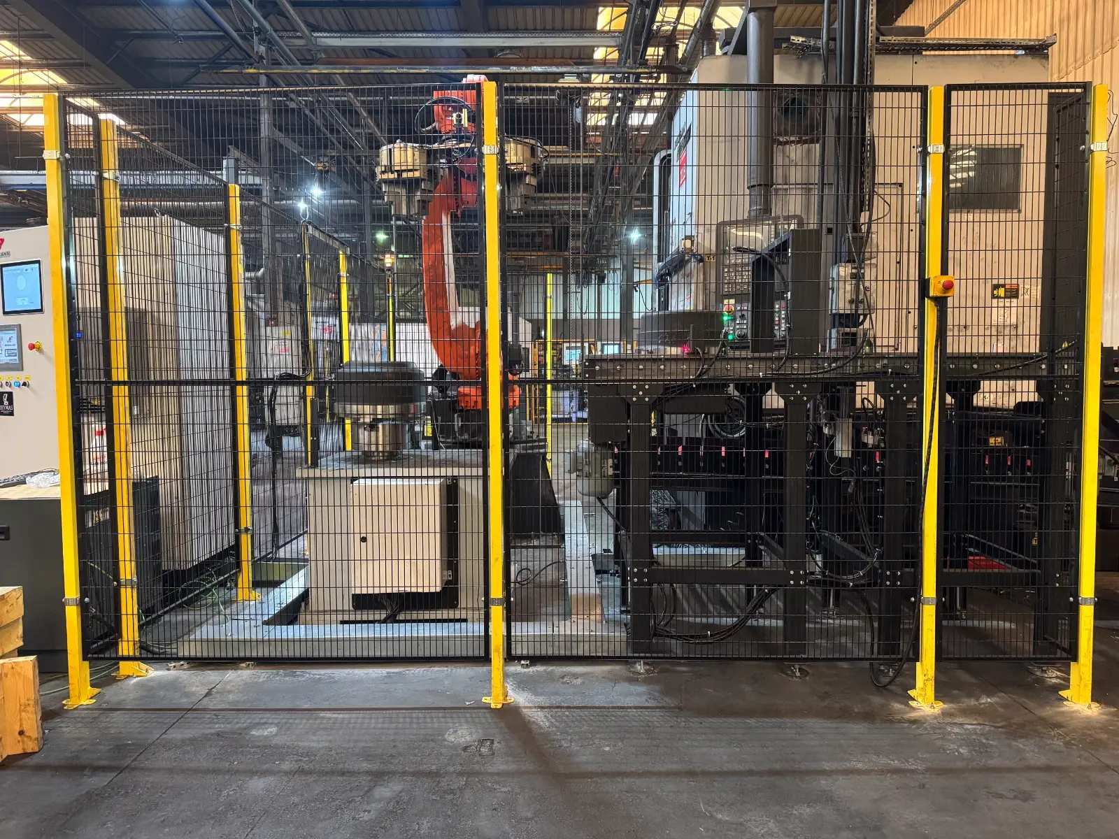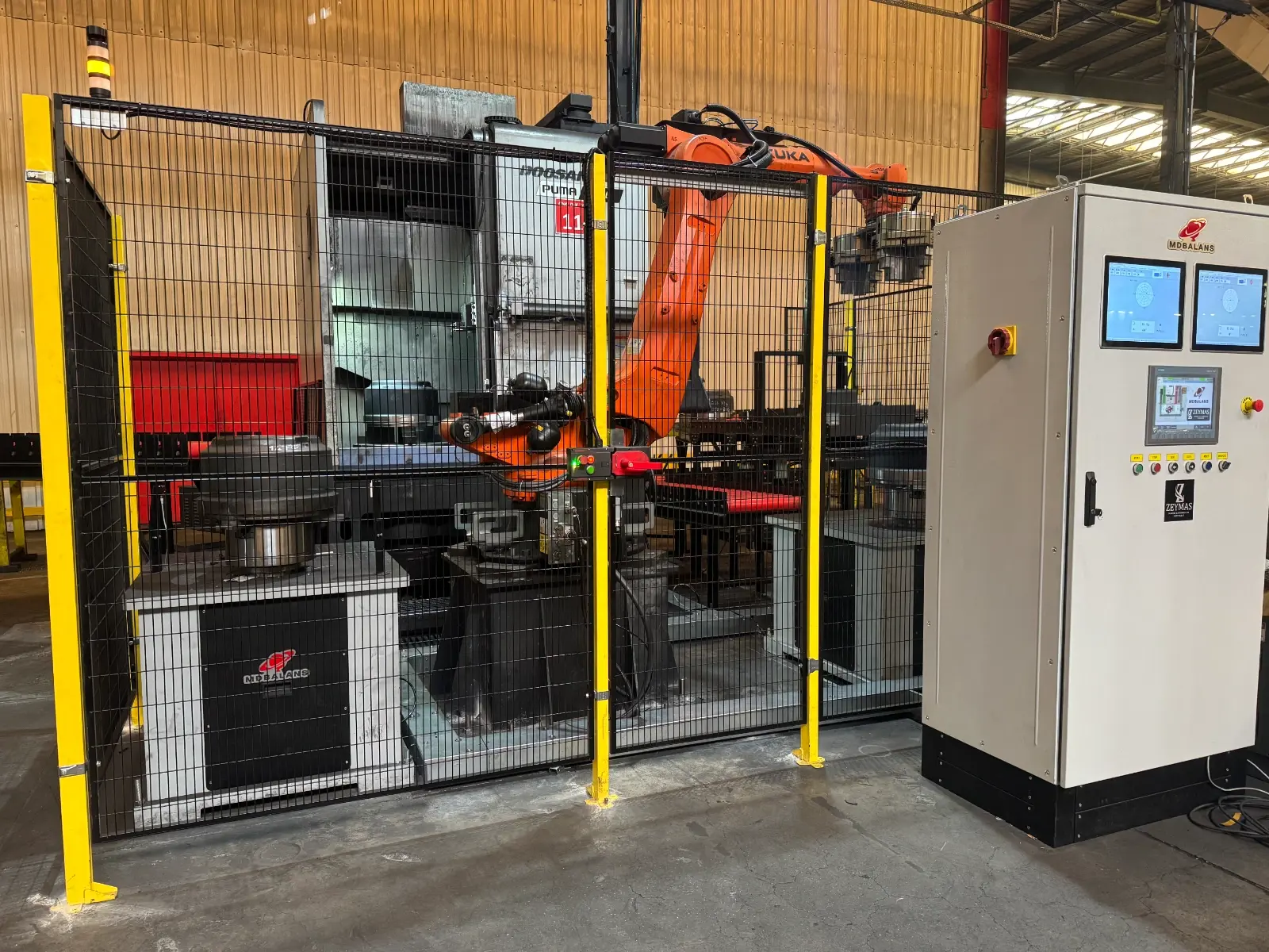 Kapalı kafes sistemi operatörün dönüş sırasında parçaya temasını engeller İş güvenliği PILZ röle ve swıchler ile kontrol edilir.Acil stoplar ve kapı sistemi ısg standartlarındadır. Kullanıcı Yetki Sınırlandırma Otomasyon ekranında ADMİN-ŞEF-OPERATÖR şifreleri verilir kritik mudahale yetkili kullanıcılar tarafından yapılır.